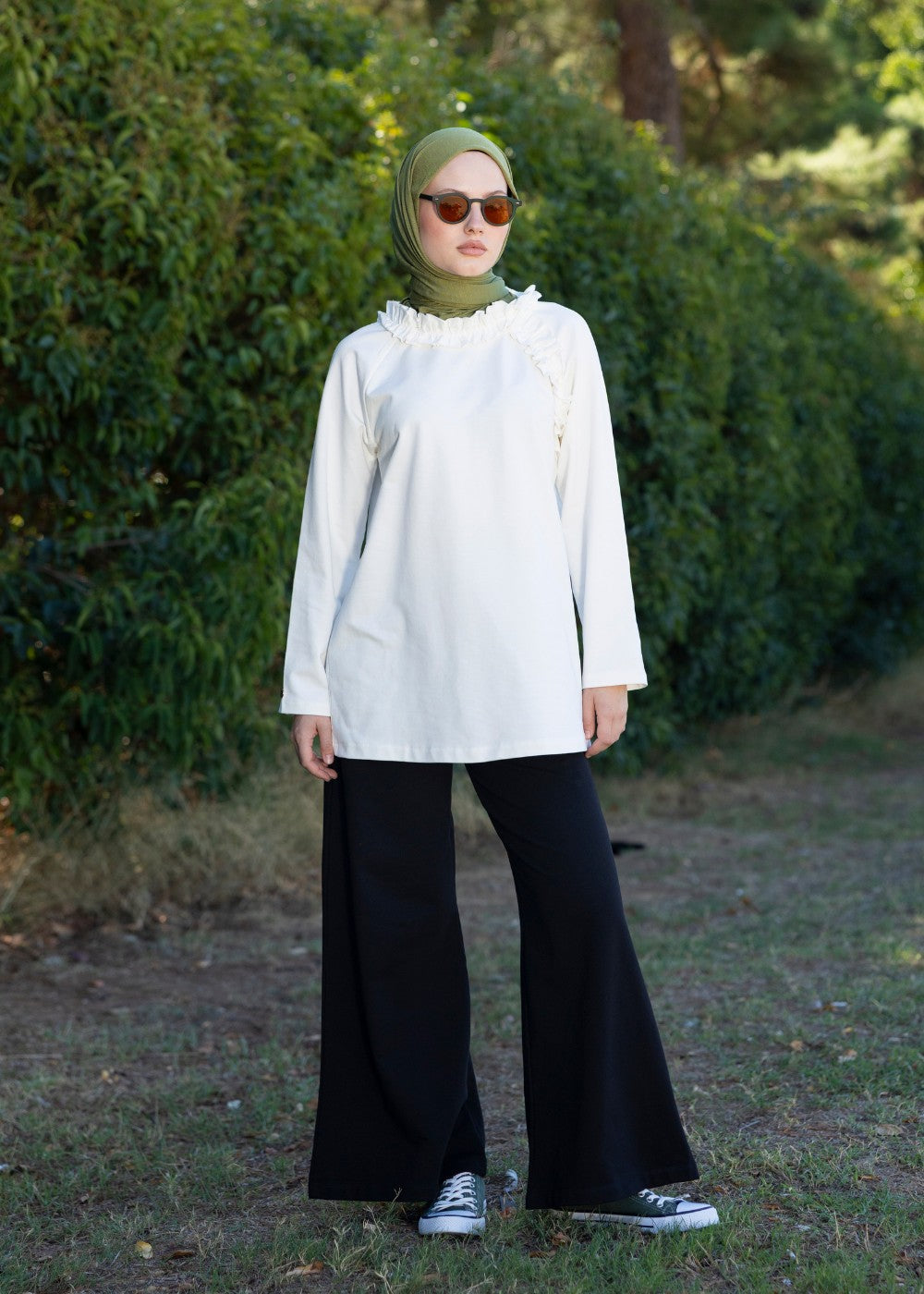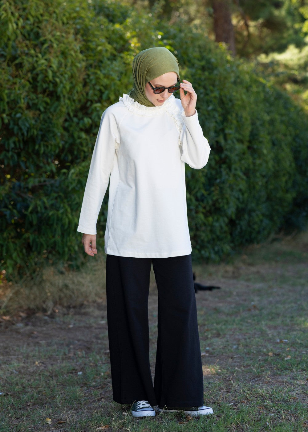 xTek Parça Fırfır Yakalı Tesettür Eşofman Üstü, ücretsiz kargo ile;